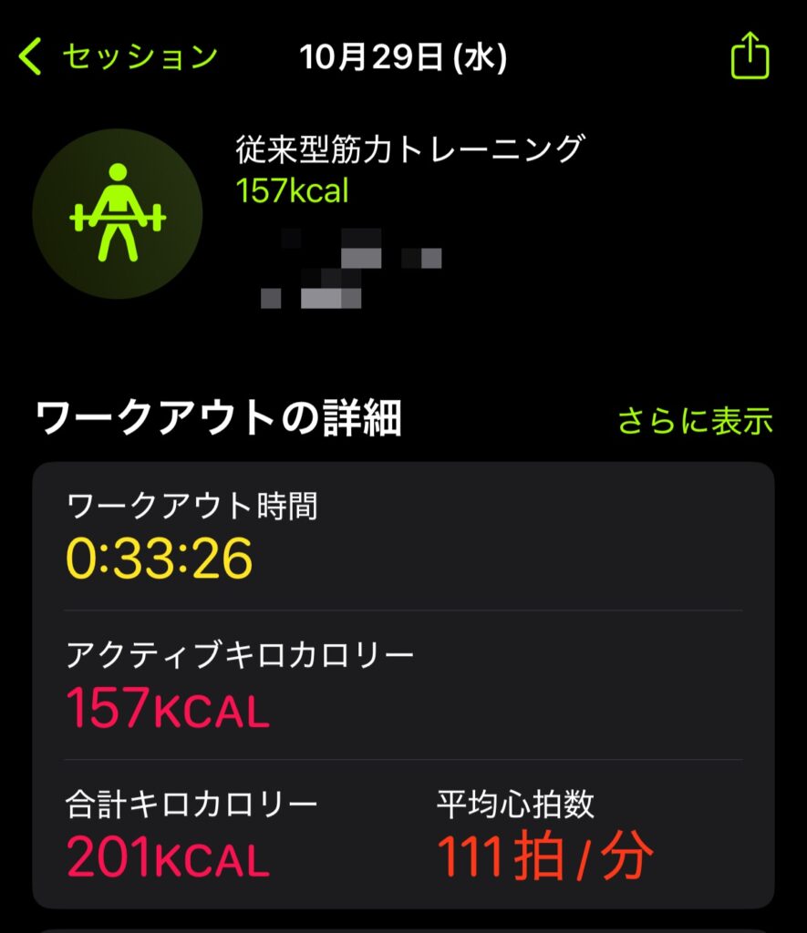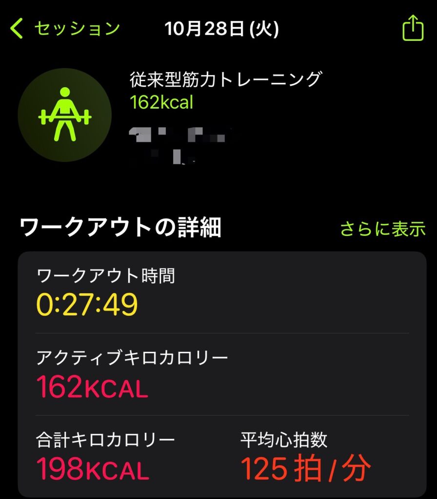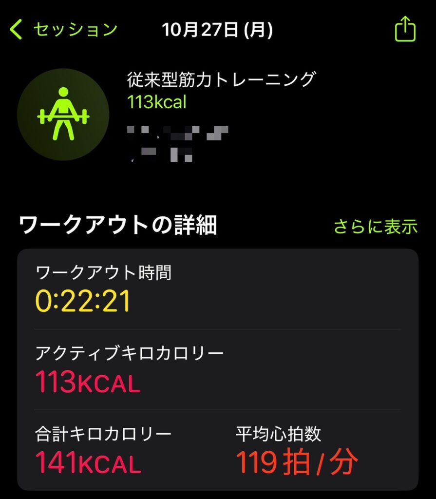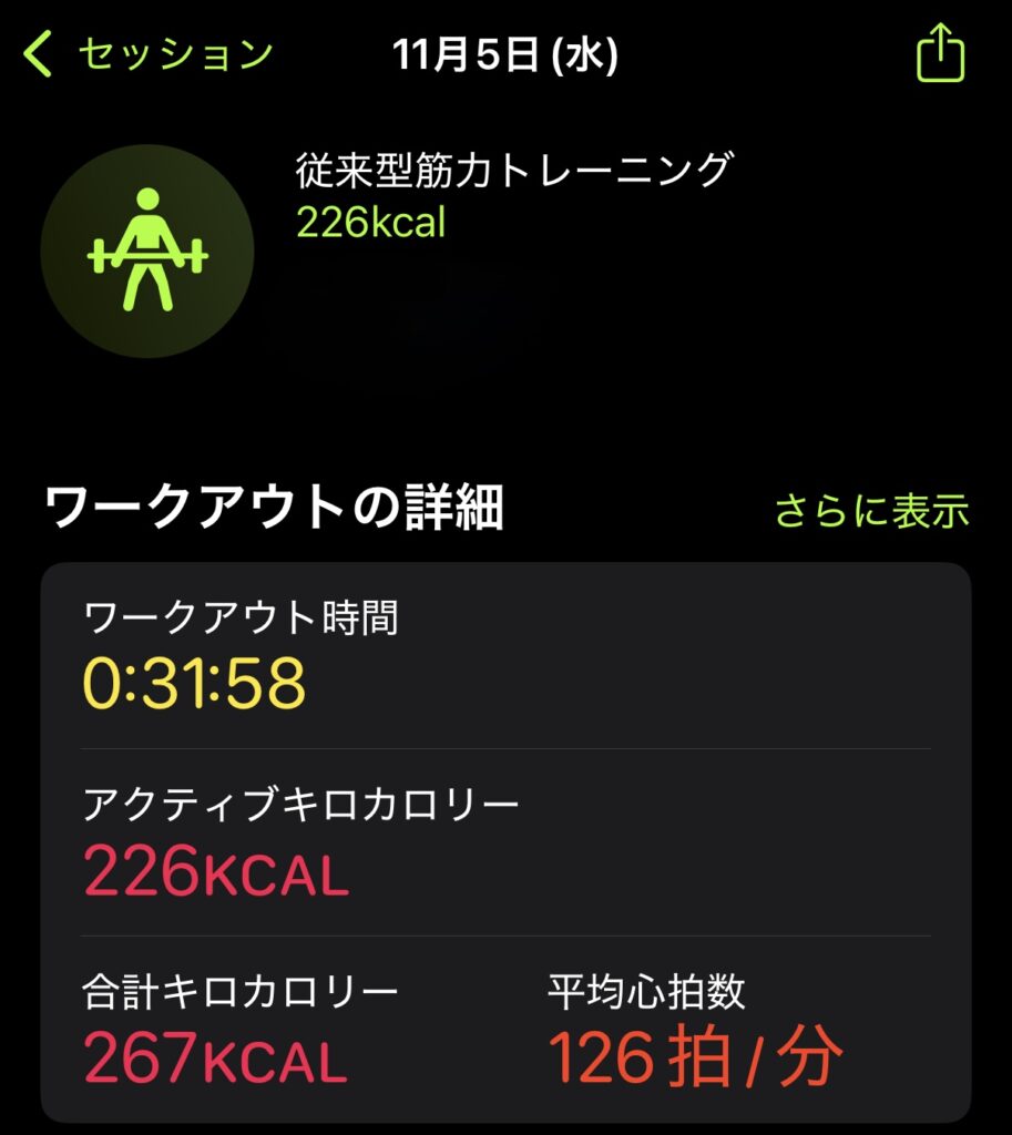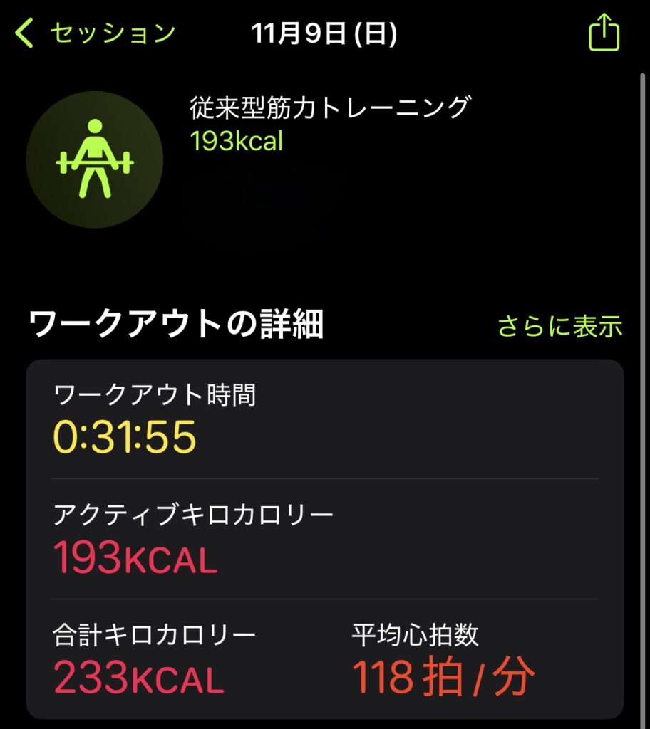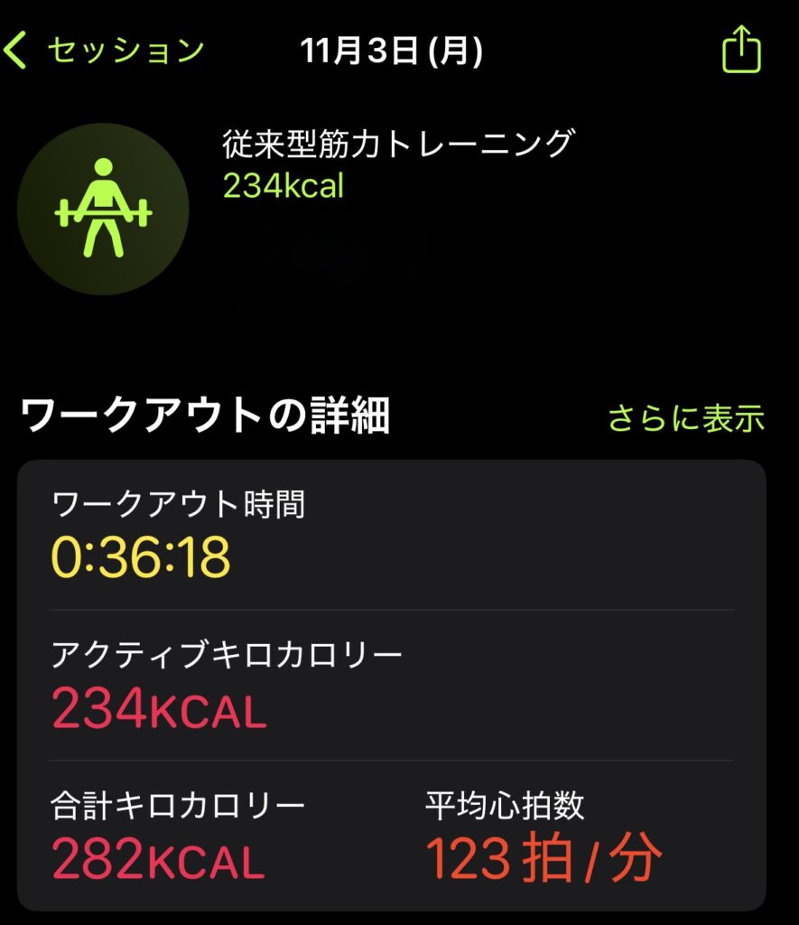 自宅トレーニング30分のメニューと強度(Apple Watchデータ)
