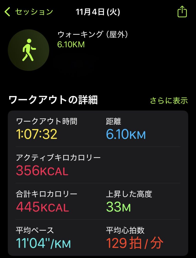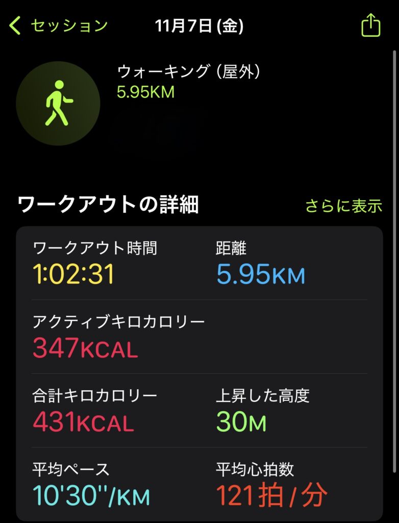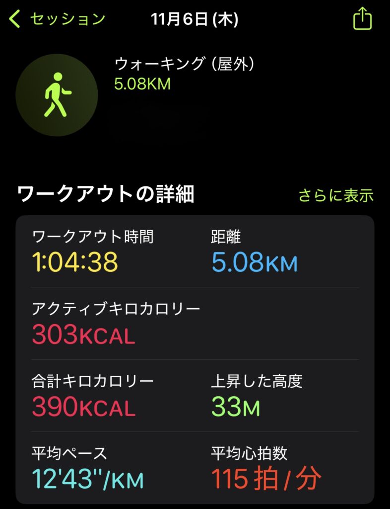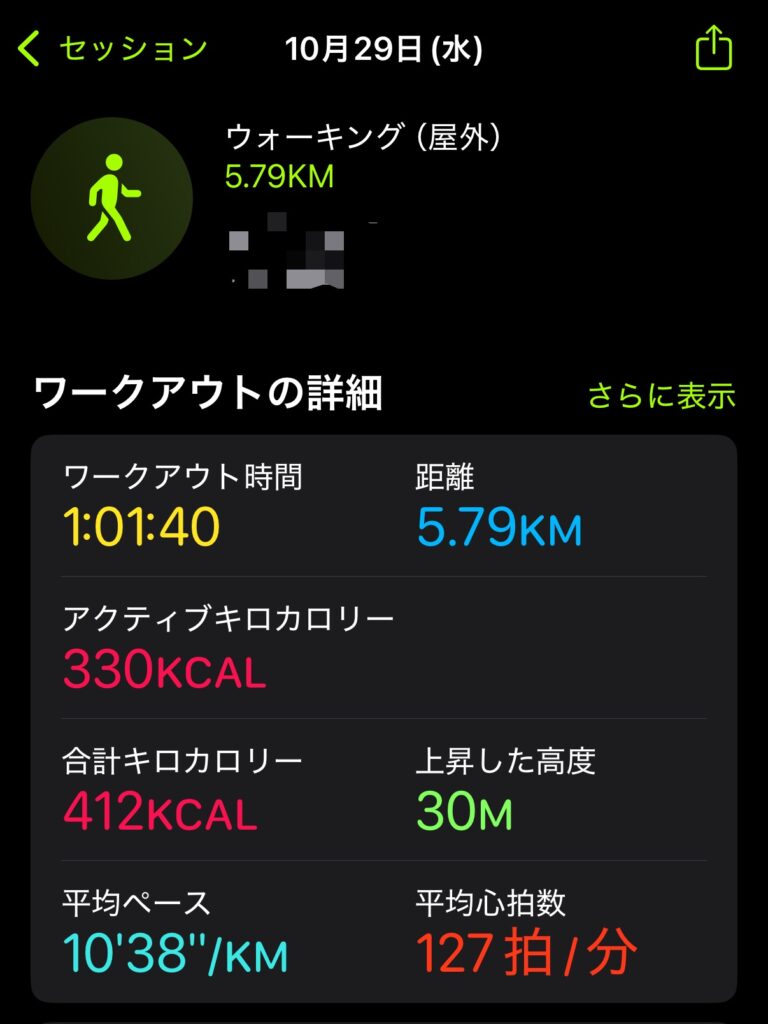 ウォーキング1時間の具体的な負荷と歩数(Apple Watchデータ)