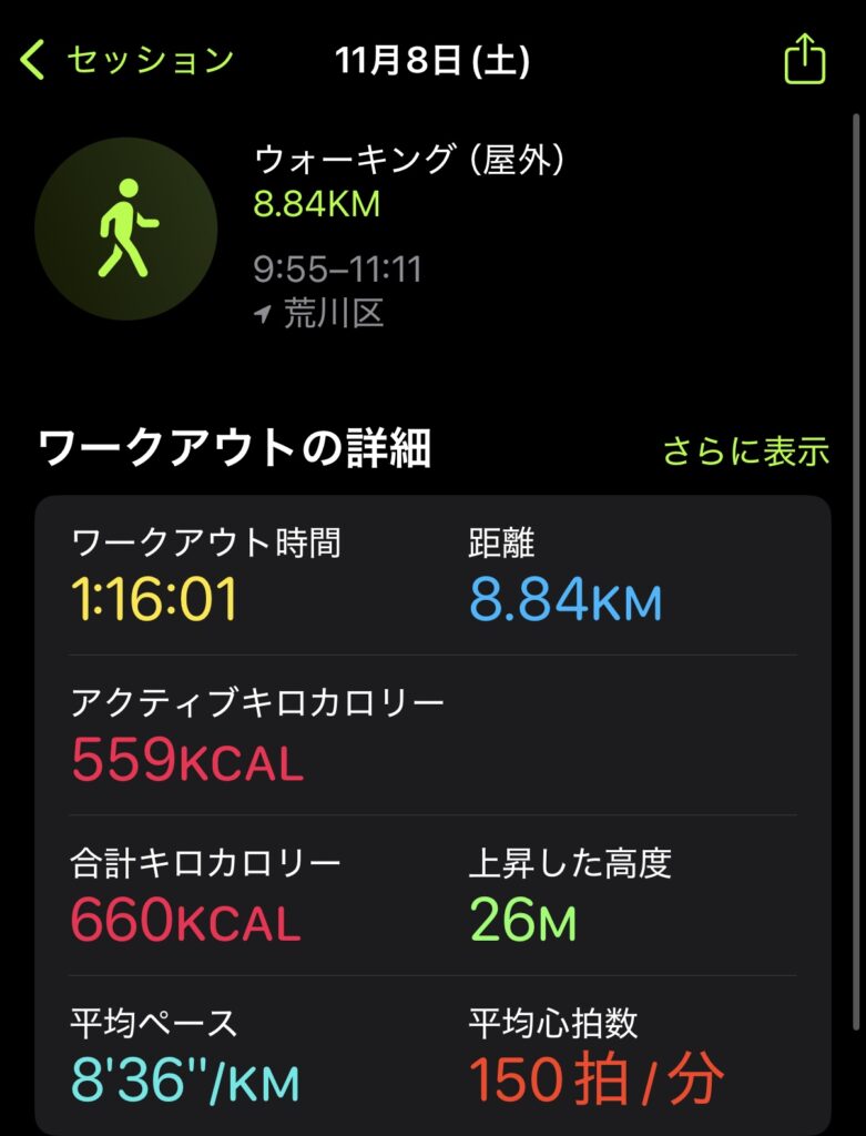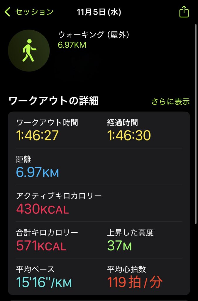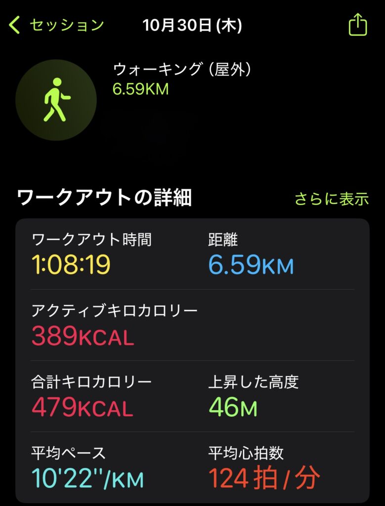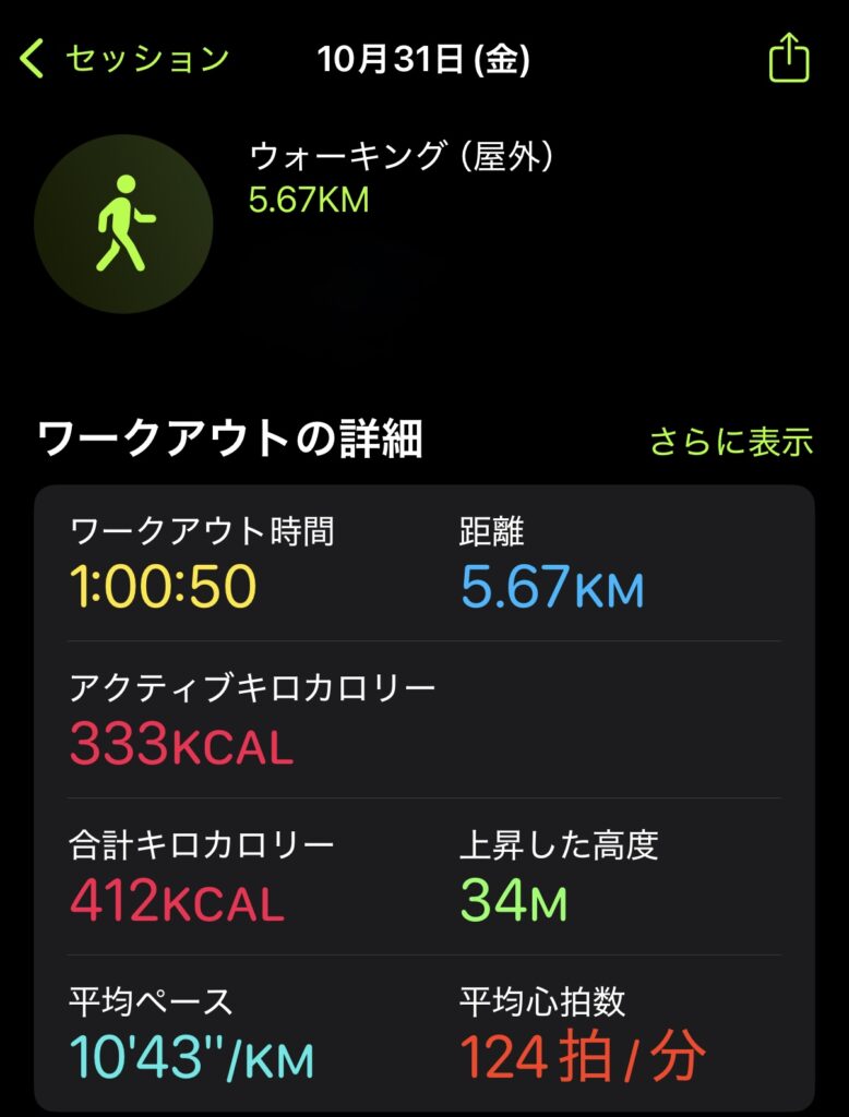 ウォーキング1時間の具体的な負荷と歩数(Apple Watchデータ)