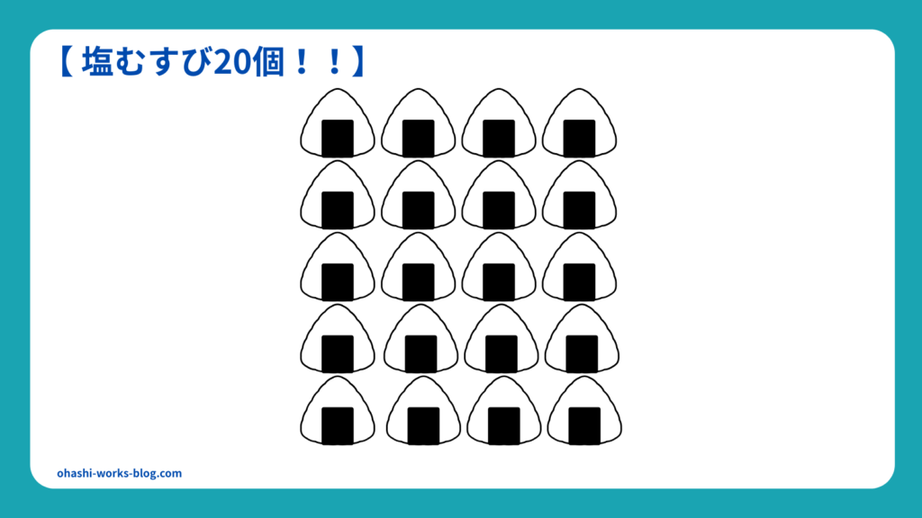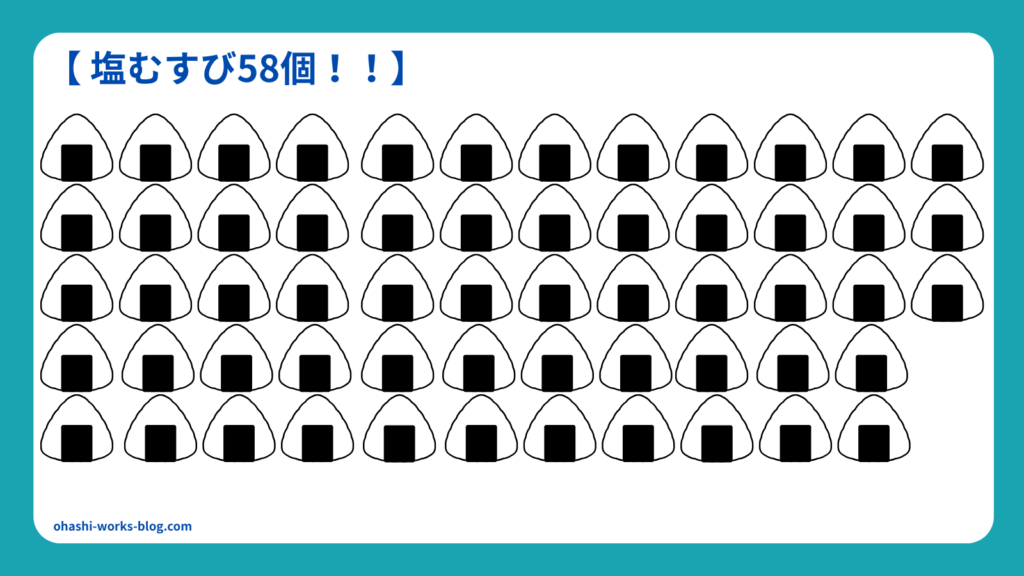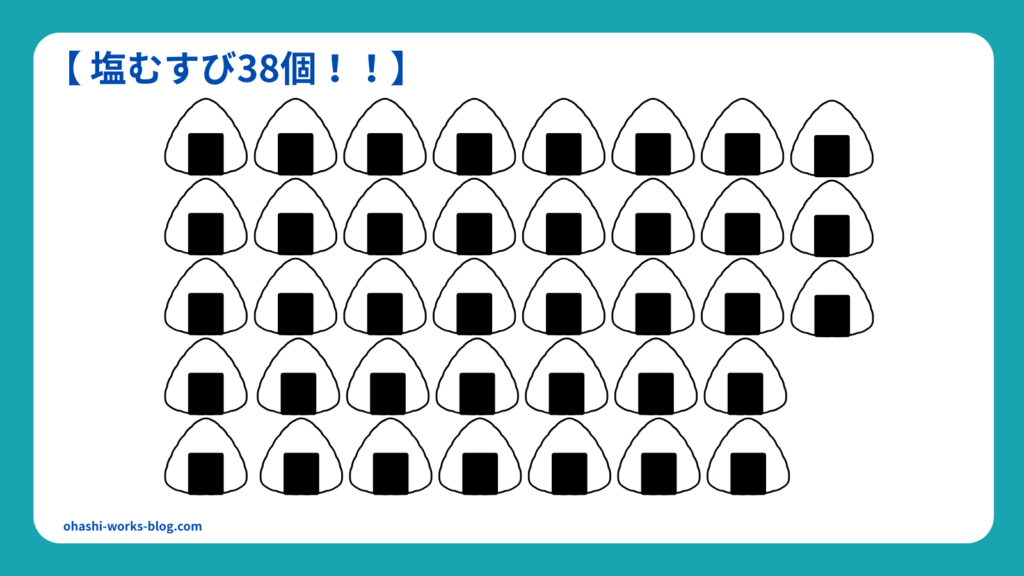 これはセブンイレブンの「塩むすび」に換算すると、約38個分!!