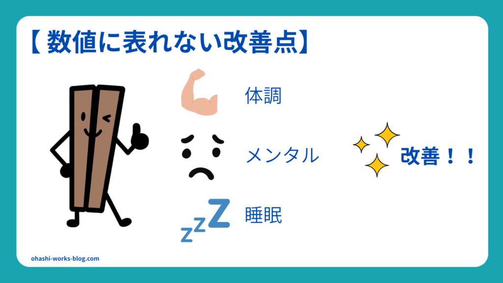 体重という「わかりやすい結果」は出ませんでしたが、毎日継続したことで、数値には現れない重要な変化をいくつか実感しました!