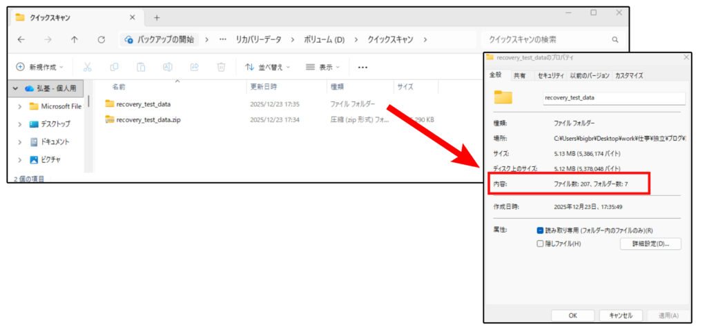 ↑復元できたzipファイルを展開しました。ファイルはもちろん、フォルダ構成もそのまま復元ができました。