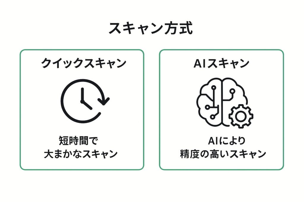 スキャン方法は「クイックスキャン」と「AIスキャン」の2種類。