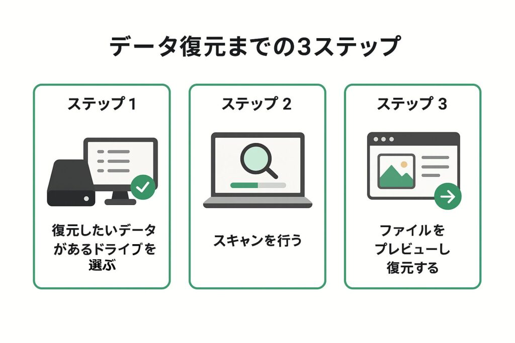 正直、使う前は「データ復元は複雑で難しそう…」と考えていました。